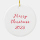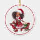 Den här keramiska julprydnaden visas i rund form med vit bakgrund och ett sött fjällande helgdag-format. Anpassa det här objektet eller köp som det är.