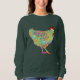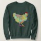 Julkyckling Colorful Festive Farm Hen Sweatshirt. Jultomten Chicken i Quirky Festive Elf hat. Färgfull Farm Hen-jultröja för att göra julhelgen ljusare och den idealiska presenten för familj och vänner som älskar djur och kycklingar. Den här färglösa hönan i pulserande grönt, gult, orange, lila, akvarier och med en söt röd och krämig, rolig, rolig, rolig tröja. Fungerar bra på ljus- eller mörk-kläder. Dekorationen Quirky farm hen artsy Julgran är utformad av konstnären Catherine Sweetman