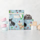 Kute jul Chihuahua hundar jackar med svart, stumt, grädde, blått och grått, klädda i festliga helgdag, jultomter och glasyssare med utspridda julprydnadsföremål.