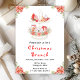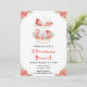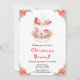Denne eleganta och festliga inbjudan till julbrunch har en tårttallrik med julsockerkakor, makaroner, godis, varm choklad och en tekanna. I hörnen finns vackra röda julstjärnor. Texten kombinerar handskriven script och sans serif-teckensnitt för en stilren och modern look. Detta är perfekt för en julbrunch eller tekalas.