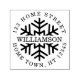 En cirkulär personlig självbläckande stämpel design med en snöflinga bakom ditt familjenamn och omgiven av din adressinformation. Perfekt för att lägga till en extra handstämplad touch på dina julkort. Designad av Thisisnotme©
