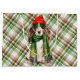 Ovärdig Julhälsningar för hund älskare som har en sympati för Cocker Spanska hund aveln med en bruna spanjor i grönt solglasögon, ett rött vintertak och grönt scarf på en säsong präglad bakgrund.