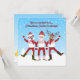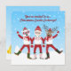 Julpartiets inbjudan med en modern tematisk julfantasi !Modern julfantasi med Jultomten, Rudolph hjort och en Polar Bear, som håller händer. På baksidan, Julklapp, vit snö och snöpiner och gott om utrymme för enkel textanpassning.