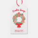 De här Cookie Swap-favorittaggarna dekoreras med en vattenfärgsutandning av cookies och festive greenery. Enkelt anpassade. Ursprunglig vattenfärg © Michele Davies.