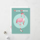 Cute och lustig flamingo i stripade strumpor, illustration av rosa och färg av rosa och mint pastel. Stripe brev kompletterar denna konstruktion