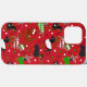 Kute Juldachshund hundar med svart, besk och äpple jackar klädd i festliga helgdag, tomthattar och porstilsvatrar med utspridda julprydnadsföremål mönster.