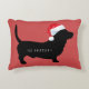 Dackel som bär en tomtehatt med anpassning av familjenamnet på en röd och grön kudde. Kuddens färg kan anpassas för att matcha din inredning, välj helt enkelt 'Klicka för att anpassa ytterligare' för obegränsade färgalternativ.