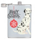 Holidhälsningar från din favorit hund aveln. Dalmatien hund med texten "God jul" och den röda julprydnaden.