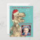Dags för en förhistorisk jul med denna roliga T rex i tomtehatt och sloganen "God Jul" tillsammans med ett barns namn och foto för att göra detta roliga julkort med dinosaurie personligt. Se till att du inte är busig utan snäll, annars kommer dessa skrämmande dinosaurier efter dig. Festlig dinosauriehumor med söt julhatt, det perfekta sättet att ge kul och skratt till din familj och vänner under den festliga högtiden. Originalkonst skapad av konstnären Catherine Sweetman