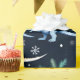 Dinosauurerar julstämning, snöflingor och nyårsklimat.