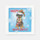 Fira julhelgen med en söt Doberman Pinscher-valp med en strumphatt och scarf i en fjäder av snöflingor. Lycklig Howlidays!