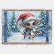 Jul Elf med Candy cane. Ge liv åt helgdag magi med den här unika julkonsten: en viskig, grått-flådd med en klassisk röd och vit julhatt. Med stort, uttrycksfullt ögon håller han en candy cane-anställd mot ett snövildslandskap fyllt av vintergrönt träd. Denna fantastiska och magiska design fångar julens glatta anda.
