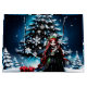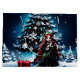 Jul Elf med Kitten. På en spännande vinternatt, när stjärnorna lyser som mousserande diamanter i himmel, är en elf-flicka centrum för ett magiskt scenario. Hennes långa, flammande röda hår faller i mjukt vågar över hennes axlar och ramar hennes ömtåliga ansikte, medan hennes spetsiga öron på ett mystiskt sätt tar sig ut ur håret. Hon bär en svart elegant täckt av en skakande grönt övertäckning - en harmonisk kombination av mörker och ljus. Den här scenen utstrålar en mystisk lugn, som om tiden står stilla ett ögonblick och det magiska ögonblicket driver bort all oro