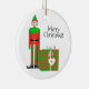 God jul! En keramisk prydnadsföremål med julklapp, chevron-version. Anpassa utskriften med din egen text och bland annat med namn.