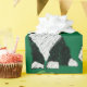 Cute Tecknad Black & White Sheepadoodle Puppy med grönt Elf-hatt och röd lamm. Det är bra att helgdag av grönten är papper!