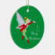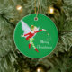 Julprydnadsföremål i rund form med gröntens bakgrund med ett sött helgdag magiskt mejeritryck. Anpassa det här objektet eller köp som det är.