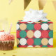 Modern snyggt och abstrakt klämmer ljus pappert. Den här funkyn som omsluter pappra innehåller en harmonisk blandning av polka dots och rand i grönt rött vitt och subtilt guld för ett festligt och unikt presentomslag.
