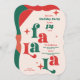 Gör dig redo att dekorera salarna och umgås med glädje med denna roliga moderna och retro kombinerade inbjudan till julfest. Stor fet Fa La la-typografi i rött och grönt. Anpassa all mindre text på detta kort för din julfest. Perfekt för en julfest, presentutbytesfest eller företags julfest inbjudan.