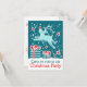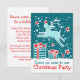 Ren julfest inbjudan. Söt illustrerad säsongsbetonad fest inbjudan, anpassa med dina egna detaljer. Söt julfest inbjudan med en ren som hoppar över presenter i teal, vit och röd. Unikt illustrerad och designad av Sarah Trett.