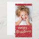 Ett roligt och fantasifullt julkort med för hand skriven "Merry Christmas" i guld på en texturerad röd bakgrund med konfettipunkter runt ett kundfoto. En del av Confetti wonderland-kollektionen av Stacey Meacham. Hitta matchande tillbehör och fler färgalternativ här: https://www.zazzle.com/collections/confetti_wonderland-119260260182491022