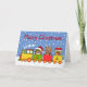 Alla ombord på det festliga jultåget. Med på resan är en söt pepparkaksgubbe, en glad ren och en potatis utklädd till tomte. Det finns en vinterbakgrund med fallande vita snöflingor. Inuti finns en mall för att lägga till ditt festliga meddelande.