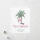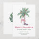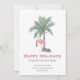 Jul Flamingo i tomtehatt med dekorerad palmer. God Jul från vårt nya hem för julen Kort . Mallen är inställd så att du kan lägga till din nya adressinformation och hålla kontakten med vänner och familj under julen .