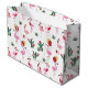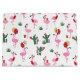 Denna utformning har en mönster av flamingor med party-ballonger och julklappar bland blommar cactus-anläggningar. #christmas #helgdagar #säsong #cactus #gifts #flamingo
