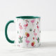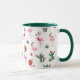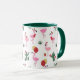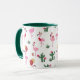 Denna utformning har en mönster av flamingor med party-ballonger och julklappar bland blommar cactus-anläggningar. #christmas #helgdagar #säsong ##köks #cactus #kaffe #gifts #flamingo #mugg