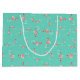 Snyggtens utformning med en reflekterande beröring med en fektiv rosa flamingos med röda tomhattar, stjärnor och handflatan träd dekorerad med bubblor som ställs mot en akvatisk bakgrund. Ett anpassade som du kan anpassa med egen text, bilder och egna idéer. En originalbild för digital konst som skapas av Quirky-Chicen.