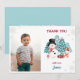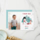 Sött jul födelsedag tack-kort med en söt snöman, kanin och julgran i en snöig skog för barns jul födelsedag. Du kan enkelt anpassa all text. Matchande artiklar finns tillgängliga i min butik. - Kate Eden Art