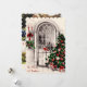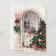 Gammaldags julkort med en scen av ett julträd, ljus och snöig natt på framsidan. Dina egna foton och personliga hälsningar på baksidan.