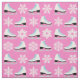 Tyg för konståkare med en rosa bakgrund, vitsnöflingor och figurskridskor i ett upprepande mönster!