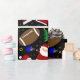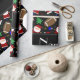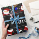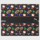 Det moderna och moderiktiga sportfotbollmönster med brun fotboll, blåttfotbollhjälmen, snö, den gulliga jultomten, santa hattar, den röda snöflingor för vit, gröna röda och gula stjärnor, gröna julgranar med svart bakgrund och med vitsvart görar randig personlig med precis tillfogar dina kända gåvor eller monogramgåvor eller din initialer för en unik gåva. För manar sportgåvaidéer och pojkar och flickor. Ideal för julklappar.