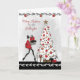 Modern julkort till guddotter, med en stilfull dam klädd i rött med klackskor som bär presenter mot ett vackert vitt dekorerat julgran. Grafik tack vare Crave Designs.