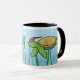 Toppen färgrik och rolig mugg för sköldpadda för kawaiigrönthav! Bakgrunden är fullt av gröna vasser som dekoreras i glödande julljus, och tecknadsköldpaddan ha på sig en Santa hatt. Unik helgdaggåva för djur älskare.
