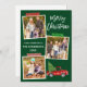 Modern Penselskript God jul 3 Photo Collage Helgdag Card innehåller Craft Tape and Watercolor Vintage Red Lastbil med Julgran. Skogens Grönt - bakgrund.