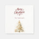 En vit bakgrund och röd mörk. Dekorerad med en snötäckt gräs träd. God jul är skrivet med ett elegant handskript i stil. Anpassa och lägga till din familj namn