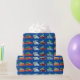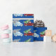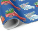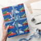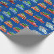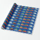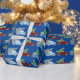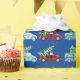 Blå julafton Papper som dekoreras med julbilar, skåpbilar och lastbilar som transporterar Julgranar och presenter.