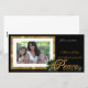 Jul Foto Kort Fred. Bild och illustration komposition med 3D guld text, "Fred" på svart bakgrund med guld ram och julihoppsblad accenter. Anpassa med dina namn, foto och hälsning.