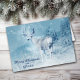 Skicka lite Nevada till dina vänner och familj i Julhelg, med det häpnadsväckande fotografiet på en buck hjort som står kant i en bergsskog där snöflingor glider ner runt honom. Texten i blått vid grund kan ändras till vad du vill, liksom texten på insidan.