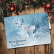 Skicka lite Washington till dina vänner och familj i Julhelg, med det här fantastiska fotot på en buck hjort som står kant i en bergsskog där snöflingor driver ner runt honom. Texten i blått vid grund kan ändras till vad du vill, liksom texten på insidan.