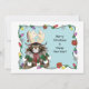 En katt som har klä sig upp av sin människa på tänder och annan julstämning. Jul ljus, prydnadsföremål och snöflingor gräns inbjudan.