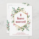 Det vackra tillkännagivandet om flytta i helgdag har ett faux guld-geometriskt ram med matchande löv i guld, elegant julgrå och röda hollbär på en modern vit bakgrund. Trendig, djupt rött vismisk typografi säger "Jag har Flyttat". Perfekten att önska dina vänner ett God jul från ditt nya hem!