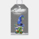Kute julnom med snöflingor och moln på grått-bakgrund. Bakgrunden till färg kan ändras. Text kan redigeras.