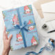 Julhem med Presenter Träd Personlig Gift Wrapping Supplies. Denna roligt vattenfärg Skandinaviska gnom som håller en present och sitta framför Julgran är ett festligt sätt att omkullkasta helgdag i år. Texten kan vara personlig och designen är på en blå snöflingerbakgrund.
