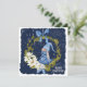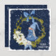 God jul på den festliga poinsettia-andedräkten på vinterbakgrunden. Återvänd för ditt personliga meddelande eller din anteckning.