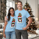 En söt julgrav i rött, grönt och vitt håller en mugg av hett choklad