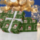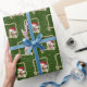 Hund för att fånga upp kugghjul med rött och vitt hårig i snöflingor och repet ram. Bakgrunden till färg kan ändras.