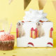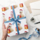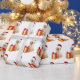 Cute guldkopieringsvalp med en helgdag-gåva och Jultomten-hatt på vit bakgrund. Bakgrunden till färg kan ändras.