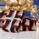 Gullervepsvalg med tomhatt och vit helgdag träd i snöflingor på rött och svart buffel.